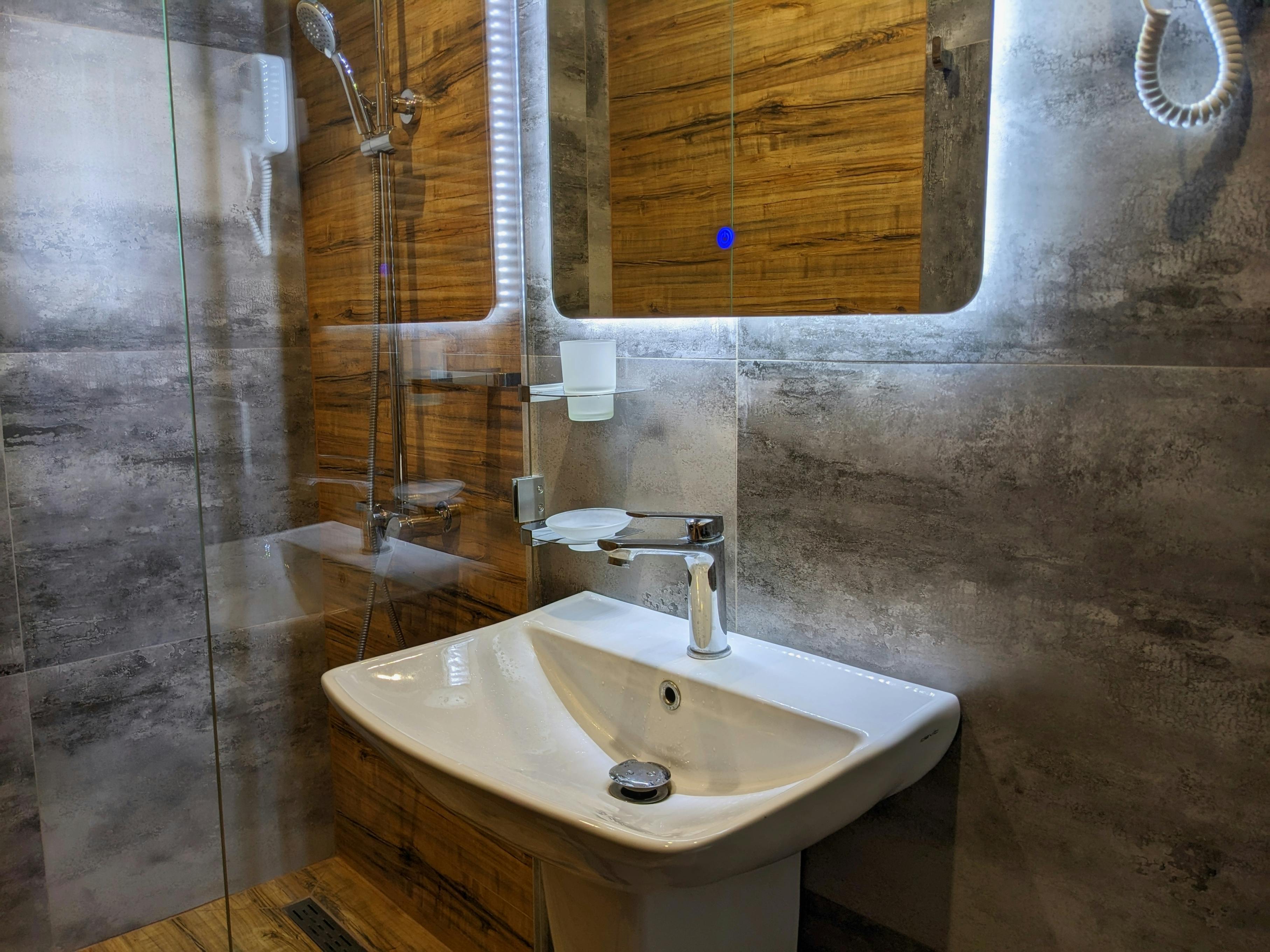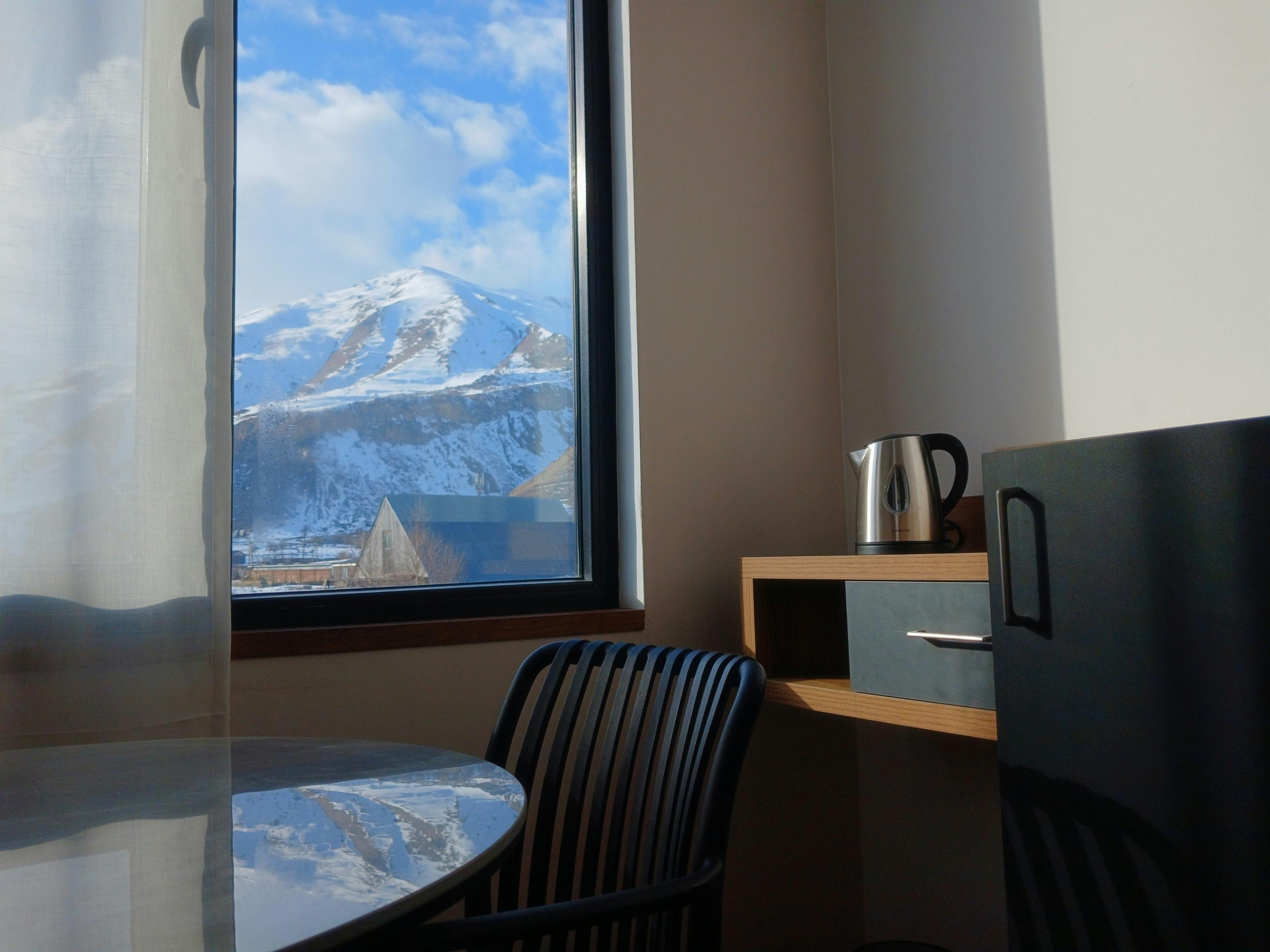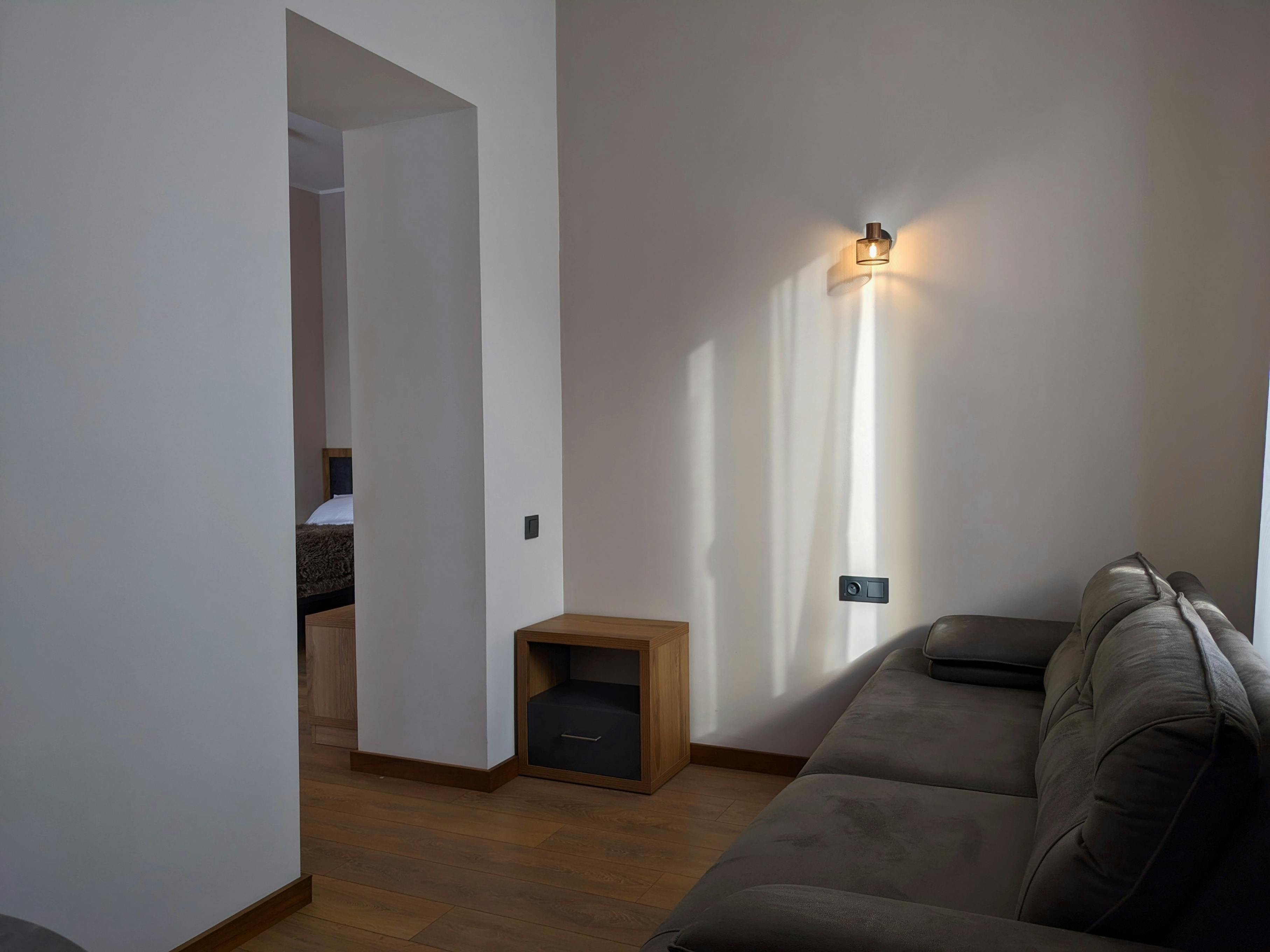 This double room features a comfortable twin bed, a private balcony with stunning mountain views, and a separate small room with a dining table and a sofa-bed for added convenience and flexibility. Perfect for couples or small groups seeking a cozy retreat with scenic charm.